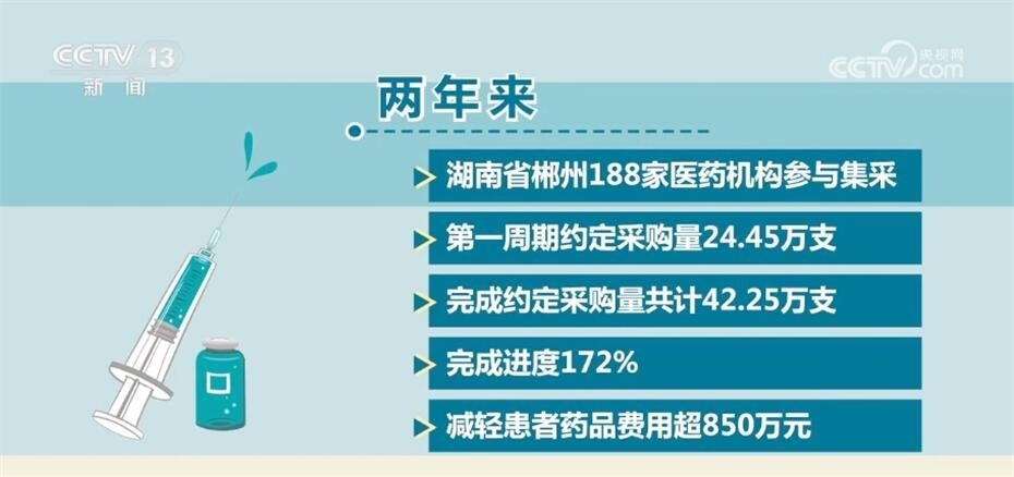 兩年來(lái),湖南省郴州188家醫(yī)藥機(jī)構(gòu)參與集采,第一周期約定采購(gòu)量24.45萬(wàn)支,完成約定采購(gòu)量共計(jì)42.25萬(wàn)支,完成進(jìn)度172%,減輕患者藥品費(fèi)用超850萬(wàn)元。