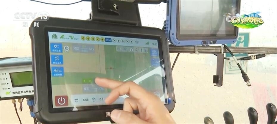 記者看到,播種機(jī)上有幾塊顯示屏,其中一塊顯示屏可以通過(guò)北斗導(dǎo)航對(duì)整個(gè)農(nóng)機(jī)的駕駛速度進(jìn)行有效控制,能夠保證播下去的種子株間距更加均勻,而且還能夠準(zhǔn)確、不漏種。