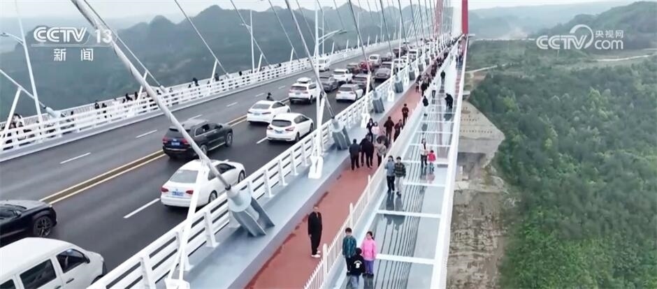 除了一些名勝古跡,這個假期,許多地方的新景觀也成為人們打卡的熱門地。在貴州,剛剛通車不久的龍里河大橋吸引了不少游客。人們登上大橋,沿著玻璃步道,體驗在云端漫步,領(lǐng)略山地峽谷的自然風(fēng)光,游客們紛紛拍照打卡。