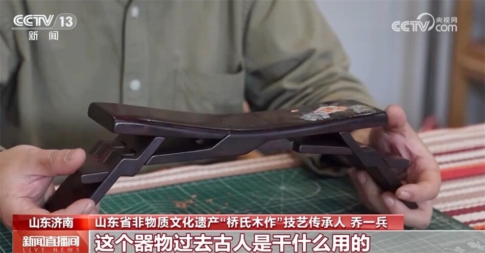 山東省非物質文化遺產(chǎn)“橋氏木作”技藝傳承人喬一兵介紹:“它本身是一整塊木頭六個面,通過鋸和鑿形成一個器物。這個器物過去古人是干什么用的?當枕頭用的,也可以當?shù)首佑茫畲蟮奶攸c是可以折疊,攜帶非常方便,傳說是魯班發(fā)明的。和眾多的優(yōu)秀的傳統(tǒng)技藝一樣,它深層次代表的是中國的一些思想、一些哲學、一些文化在里邊,魯班枕的核心是平衡和和諧,我覺得我很有必要把它傳承下來,發(fā)揚光大?!?/p>