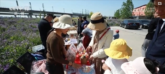 一年前,這里還是一片工地遺留的建筑渣土。當(dāng)?shù)嘏c科研團(tuán)隊(duì)合作,引進(jìn)營(yíng)養(yǎng)土技術(shù),一年內(nèi)就將撂荒地變成了“桃花源”?;ê_呥€擺起了創(chuàng)意市集,結(jié)合“花”元素的花餑餑、非遺農(nóng)民畫(huà)和黑陶工藝品,吸引了不少游客消費(fèi)。