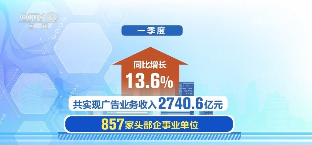 市場(chǎng)監(jiān)管總局公布數(shù)據(jù)顯示,一季度,857家頭部企事業(yè)單位共實(shí)現(xiàn)廣告業(yè)務(wù)收入2740.6億元,同比增長(zhǎng)13.6%。
