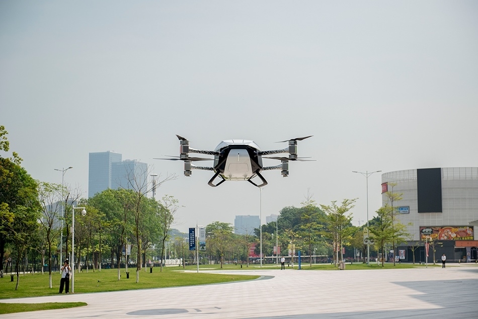 5月15日,在廣州市番禺區(qū)小鵬匯天總部,飛行汽車旅航者X2在進行飛行演示。 新華社記者 徐嘉懿 攝
