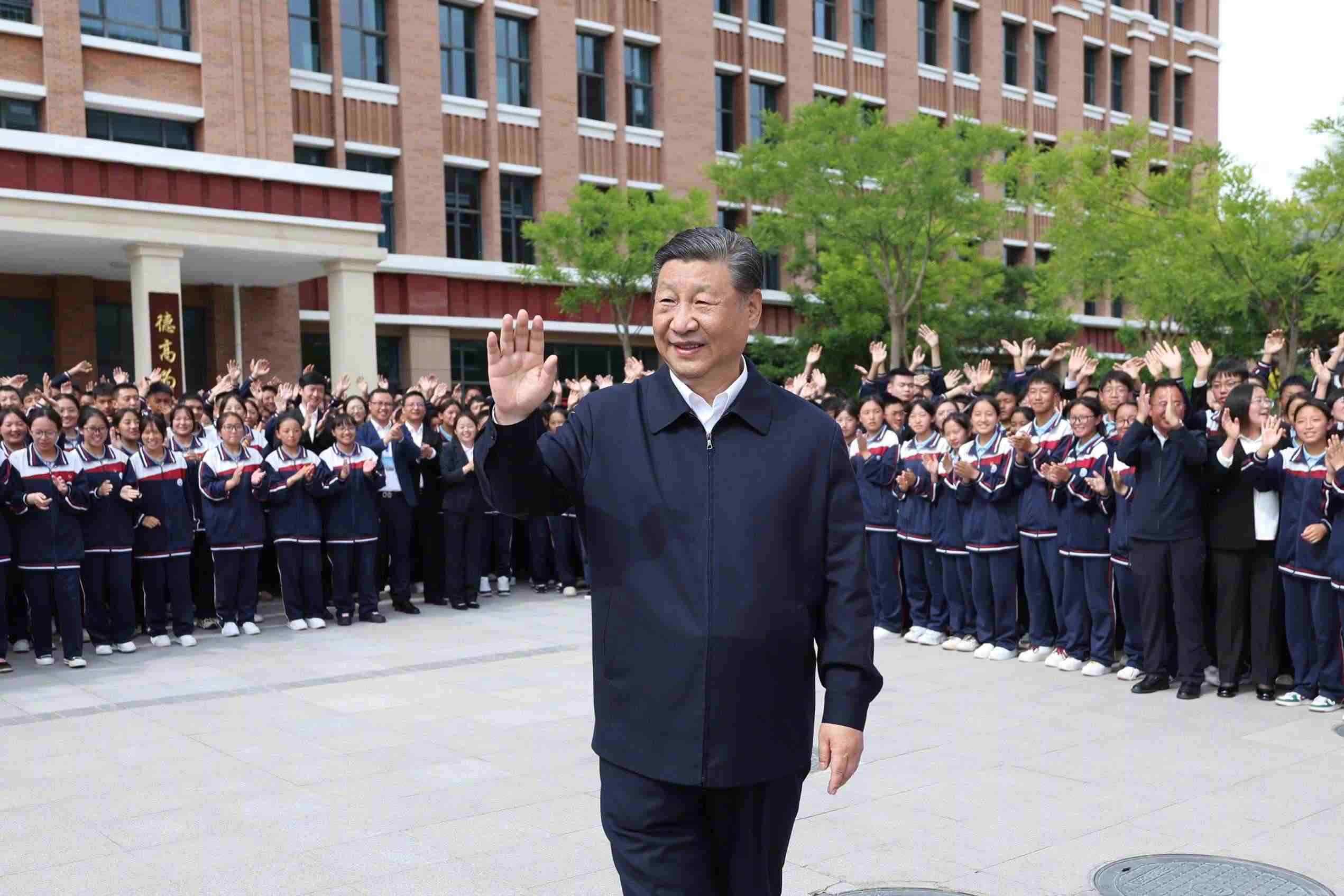 2024年6月18日下午,在青??疾煺{(diào)研的習(xí)近平總書(shū)記來(lái)到果洛西寧民族中學(xué),了解當(dāng)?shù)厣钊胪七M(jìn)教育工作東西部協(xié)作和對(duì)口支援等情況。