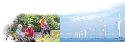 圖④:貴州省貴陽市白云區(qū)白沙關(guān)社區(qū)幸福苑養(yǎng)老中心,老年人在花園里休息。袁福洪攝(影像中國) 圖⑤:遼寧大連莊河海上風電項目。新華社記者 楊 青攝