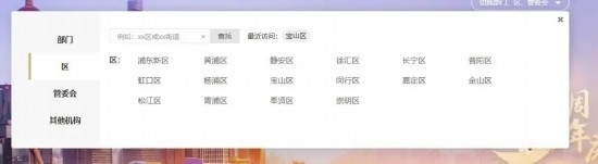 2點(diǎn)擊網(wǎng)頁(yè)右上方“切換部門,區(qū),管委”。