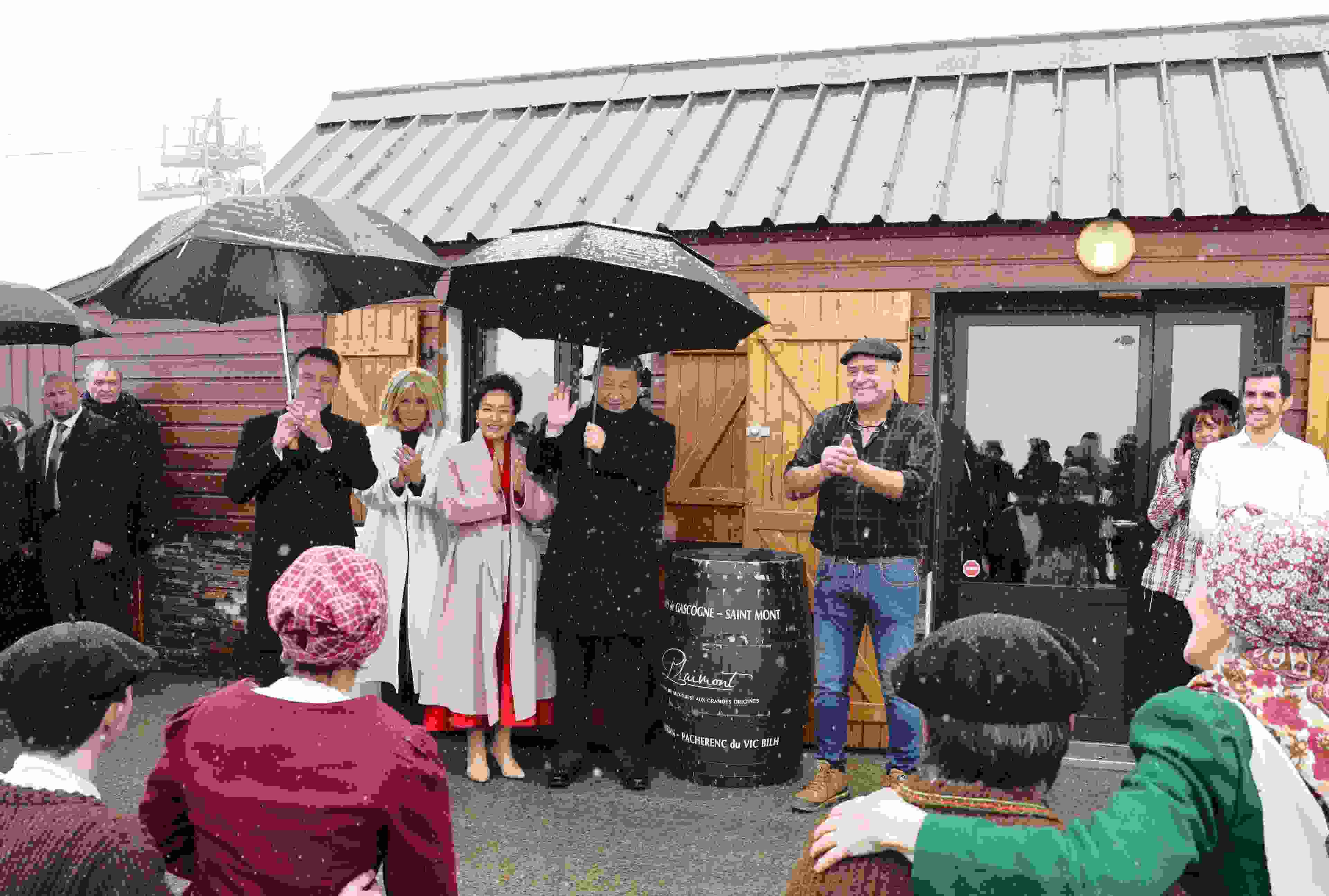 當(dāng)?shù)貢r(shí)間2024年5月7日,應(yīng)法國總統(tǒng)馬克龍?zhí)貏e邀請(qǐng),國家主席習(xí)近平乘專機(jī)來到法國西南部上比利牛斯省訪問。在圖爾馬萊山口“牧羊人驛站”,習(xí)近平和夫人彭麗媛同馬克龍和夫人布麗吉特共同欣賞當(dāng)?shù)卮迕癖硌莸木哂袧庥裟戏L(fēng)情的牧羊人之舞。新華社記者 姚大偉 攝
