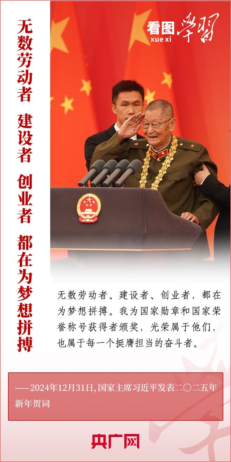 “夢雖遙,追則能達;愿雖艱,持則可圓?!毙履昵跋Γ?xí)近平主席發(fā)表二〇二五年新年賀詞。在溫暖有力的講述中,習(xí)主席深情回望過去一年中國不平凡的奮斗歷程、精彩瞬間,感慨大家一道經(jīng)歷的風(fēng)雨彩虹、難忘時刻,贊美無數(shù)為夢想拼搏的勞動者、建設(shè)者、創(chuàng)業(yè)者。習(xí)主席說,中國式現(xiàn)代化的新征程上,每一個人都是主角,每一份付出都彌足珍貴,每一束光芒都熠熠生輝。讓我們充滿信心,在新的一年接續(xù)奮斗!