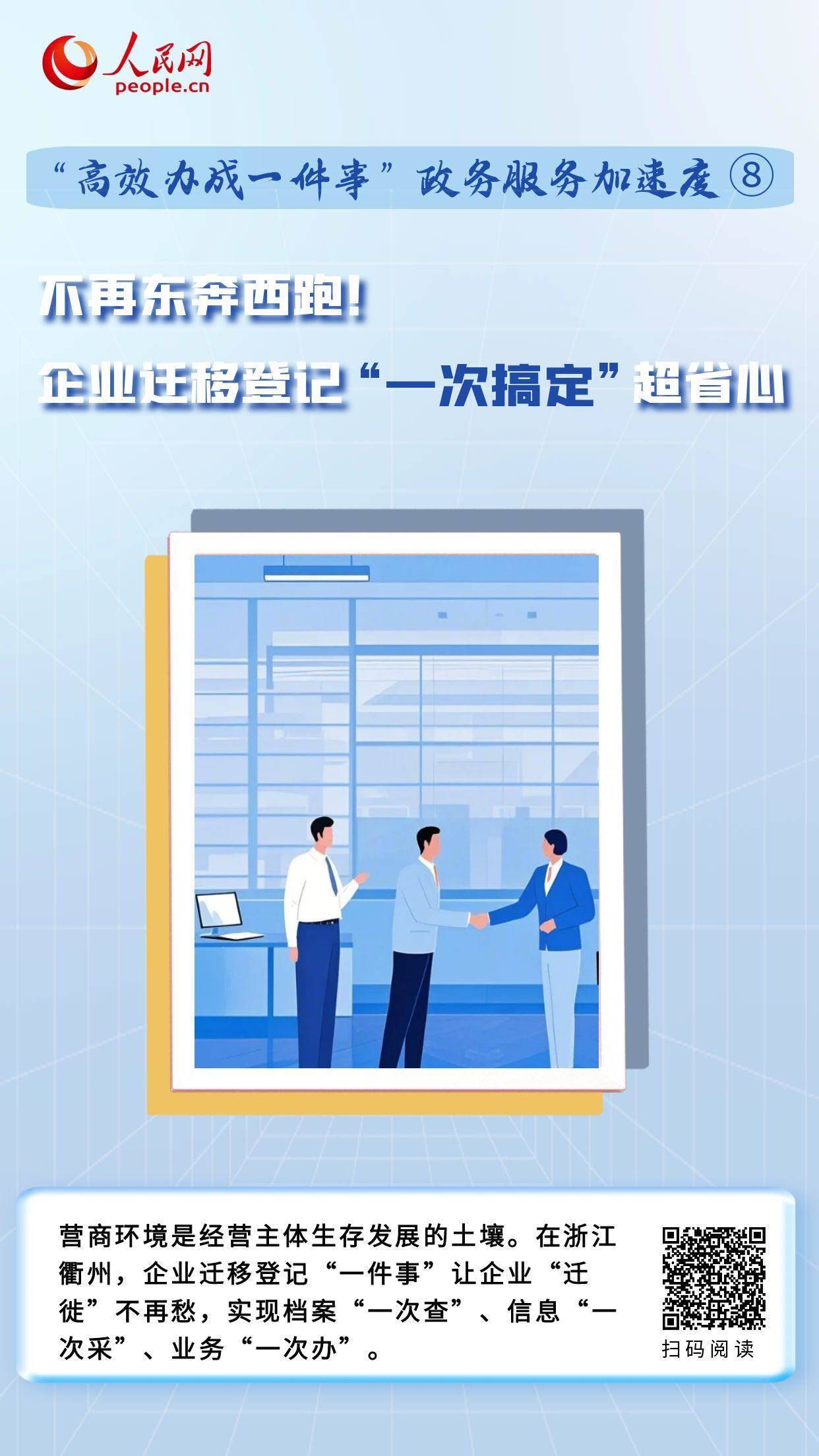 在浙江衢州,企業(yè)“遷徙”不再愁,通過建立線下協(xié)同、線上議題聯(lián)動機制,將原先企業(yè)遷移涉及7個部門15個環(huán)節(jié),壓減為通過“1個平臺、1個環(huán)節(jié)”,實現(xiàn)檔案“一次查”、信息“一次采”、業(yè)務“一次辦”。