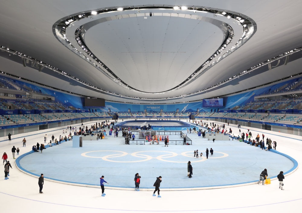 2025年1月4日,游客在國家速滑館體驗滑冰。2024至2025雪季,國家體育場“鳥巢”歡樂冰雪季、國家速滑館“冰絲帶”冰雪狂歡季等活動相繼開展,吸引了眾多游客。