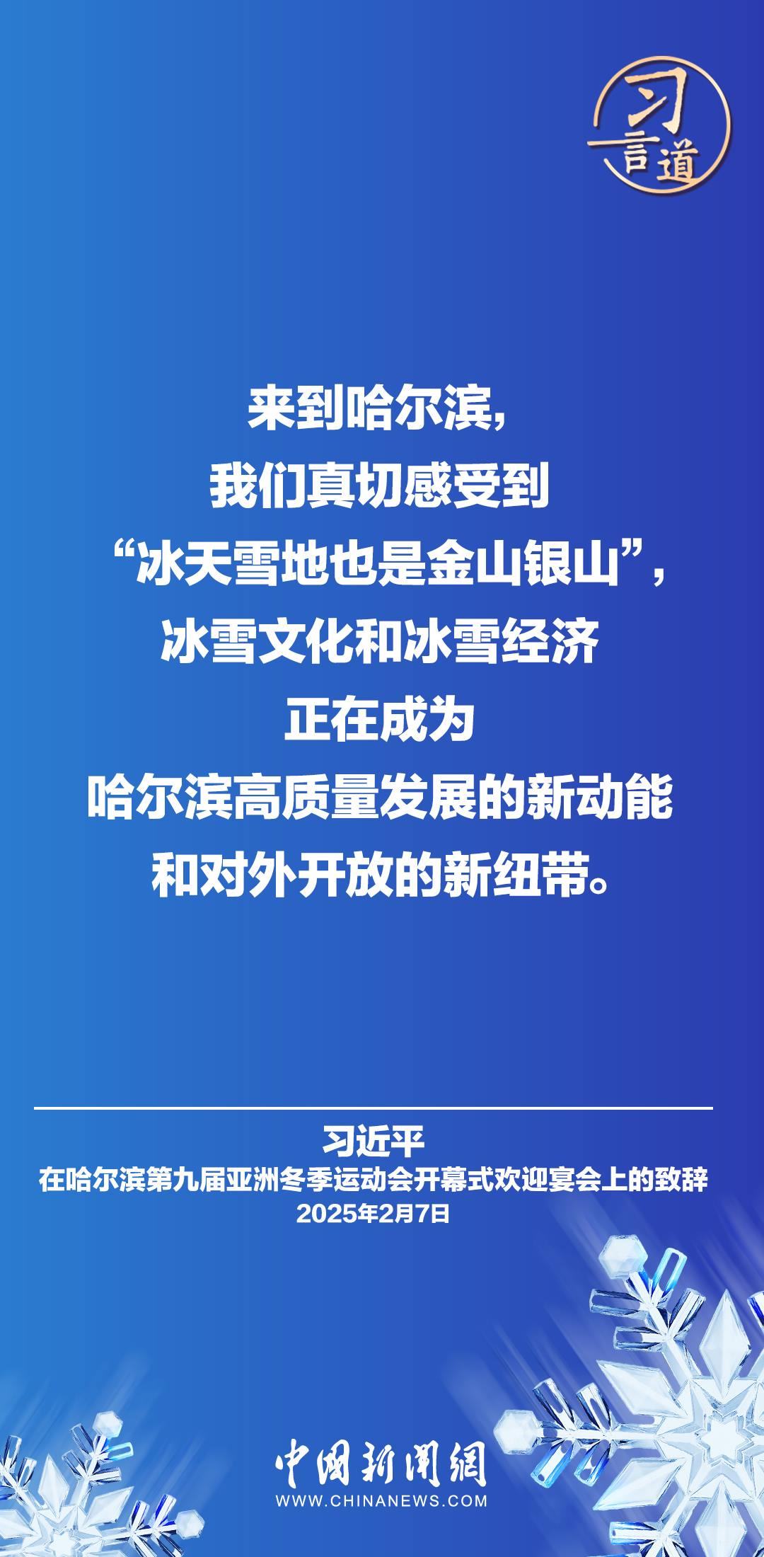 2月7日,國家主席習(xí)近平和夫人彭麗媛在黑龍江省哈爾濱市舉行宴會,歡迎來華出席哈爾濱第九屆亞洲冬季運(yùn)動(dòng)會開幕式的國際貴賓。習(xí)近平主席在致辭時(shí)指出——