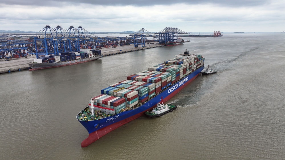 2024年5月19日,一艘海輪在廣西欽州港碼頭靠泊(無(wú)人機(jī)照片)。欽州港是北部灣港的組成部分,也是中國(guó)西南地區(qū)通往東盟的重要出海口。西部陸海新通道利用鐵路、公路、水運(yùn)等多種運(yùn)輸方式,由重慶一路向南,經(jīng)廣西北部灣出海通達(dá)世界各地。截至2025年1月1日,北部灣港總航線達(dá)80條,其中外貿(mào)航線49條,基本實(shí)現(xiàn)國(guó)內(nèi)主要港口和東南亞、東北亞主要港口全覆蓋。