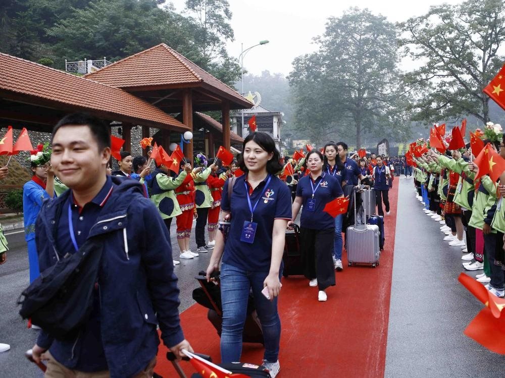 2016年11月7日,在越南北部諒山省,人們歡迎中國(guó)青年代表參加第三屆中越青年大聯(lián)歡。