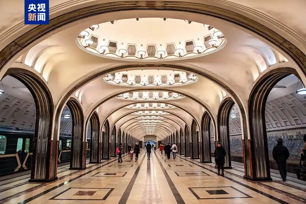 △莫斯科地鐵米丘林大街站由中企中標建設,地鐵站有紅色立柱、團壽紋、祥云等中國元素裝飾。