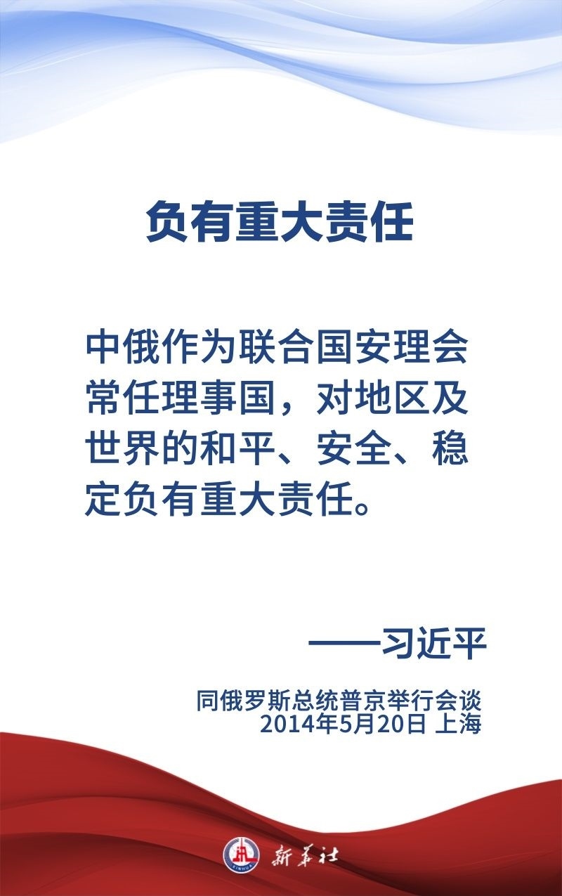 中俄關(guān)系歷經(jīng)風(fēng)雨,歷久彌堅,樹立了大國、鄰國永久睦鄰友好、全面戰(zhàn)略協(xié)作、互利合作共贏的典范。習(xí)近平主席和普京總統(tǒng)保持密切交往,為新時代中俄關(guān)系作出頂層設(shè)計,提供戰(zhàn)略引領(lǐng)。在國事訪問等重要場合,習(xí)近平主席這樣論述中俄關(guān)系——