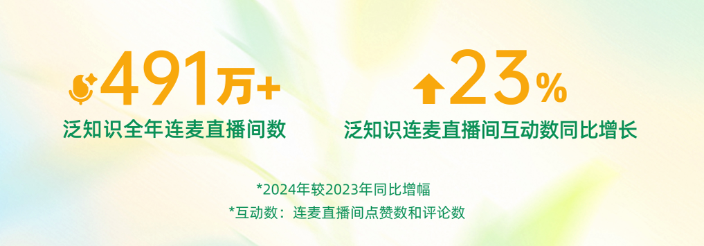 隨著用戶互動與創(chuàng)作者投稿形成正向循環(huán),推動生態(tài)雙向繁榮,連麥學習正重塑知識普惠的全新范式。數(shù)據(jù)顯示,2024年,快手泛知識連麥直播場次達491萬場,直播間互動量同比提升23%,健康咨詢、教育助學、法律咨詢位列連麥內(nèi)容前三?! ?/p>