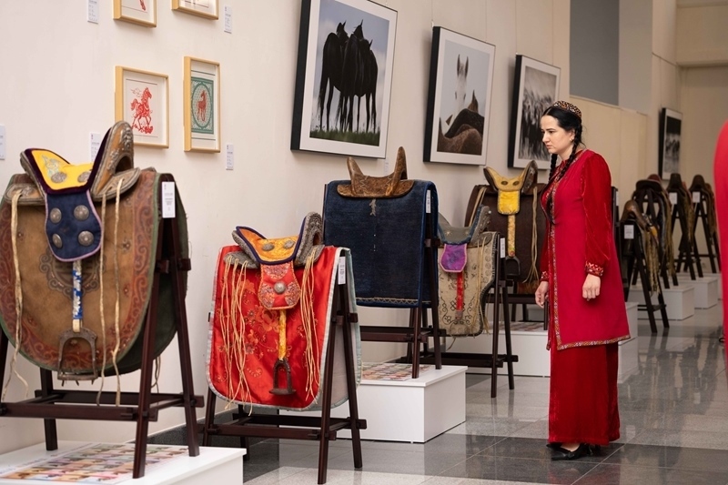 2025年6月3日,一名女子在土庫(kù)曼斯坦首都阿什哈巴德參觀“騏驥馳騁——2025中國(guó)馬文化展”。新華社發(fā)