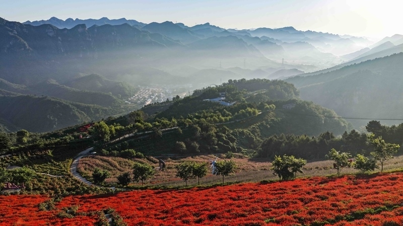 9月7日在河北省承德市興隆縣南天麗景風(fēng)景區(qū)拍攝的秋日晨景(無人機照片)。