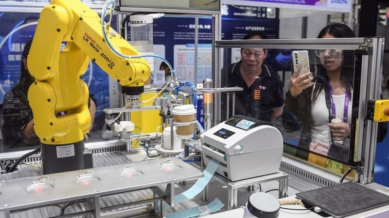 2025年9月19日,在廣西南寧國際會展中心,機器人在制作飲品。新華社記者 張愛林 攝