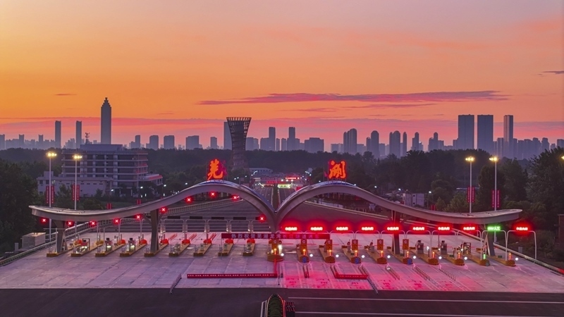 7月1日,車輛通過蕪湖龍灣長江隧道收費站(無人機照片)。