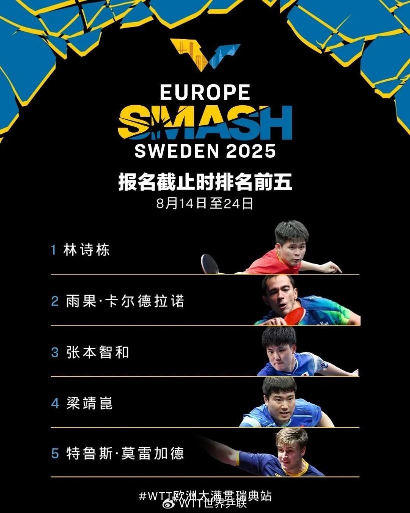 新華社北京7月6日電 世界乒乓球職業(yè)大聯(lián)盟(WTT)歐洲大滿(mǎn)貫賽瑞典站將于8月14日至24日在馬爾默舉行。首批參賽名單6日公布,男、女單打世界排名第一的國(guó)乒隊(duì)員林詩(shī)棟、孫穎莎在列。