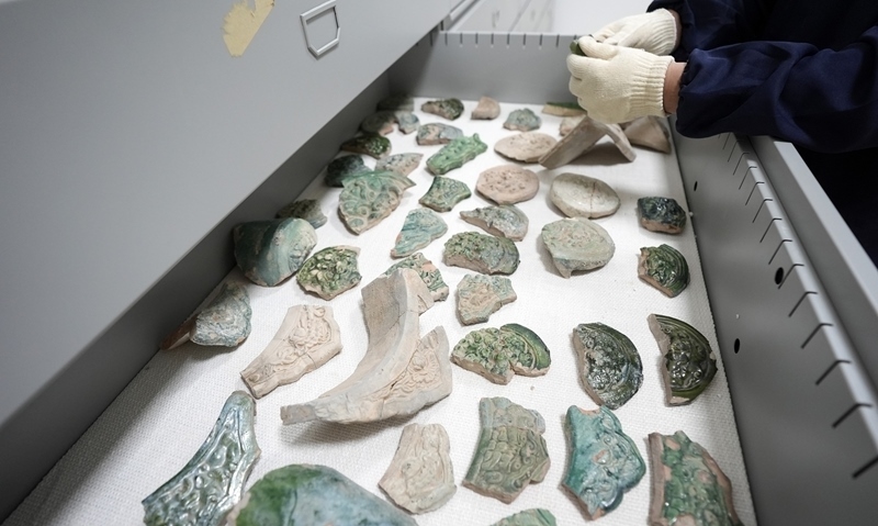 7月9日,在西夏陵管理處文物庫,工作人員在整理文物。