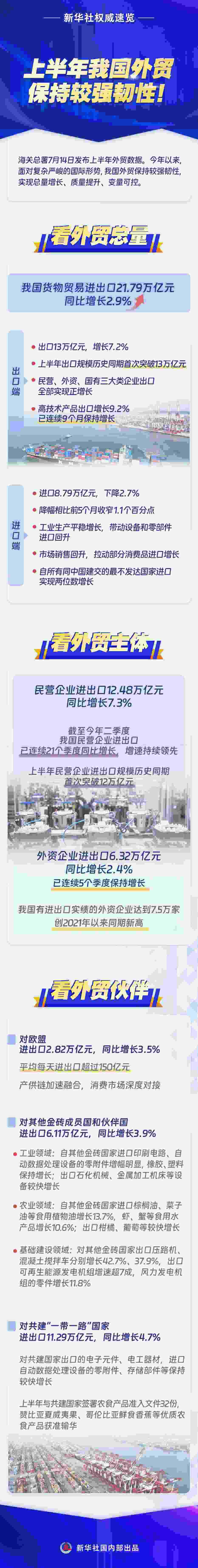 新華社權(quán)威速覽丨上半年我國外貿(mào)保持較強(qiáng)韌性!