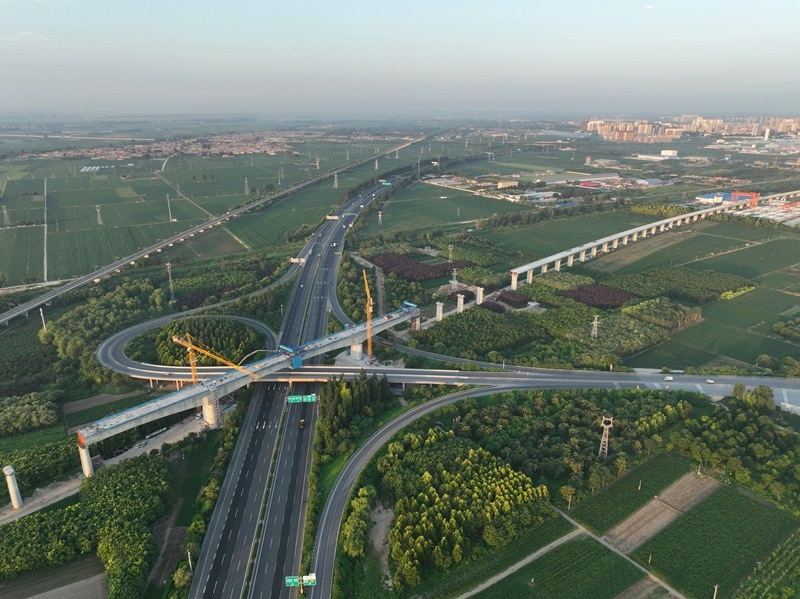 7月18日拍攝的雄忻高鐵保定東特大橋跨京港澳高速連續(xù)梁中跨施工現(xiàn)場(無人機(jī)照片)。