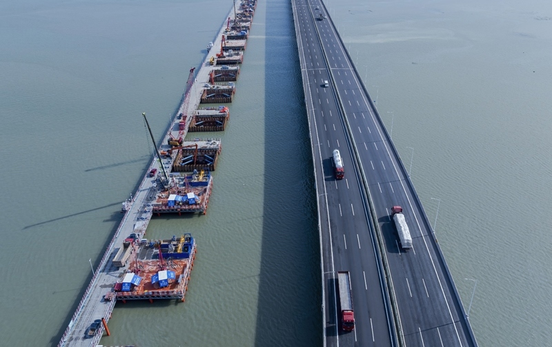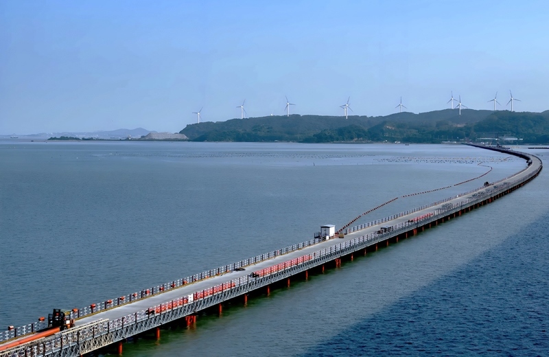 7月18日,新建漳汕高鐵全線控制性工程漳江灣跨海特大橋主棧橋完工,為后續(xù)海上各工作面施工奠定基礎(chǔ)。漳汕高鐵漳江灣跨海特大橋橋梁全長5.8公里,海域部分橋梁長5公里。目前,大橋主體結(jié)構(gòu)施工正在有序推進(jìn)。