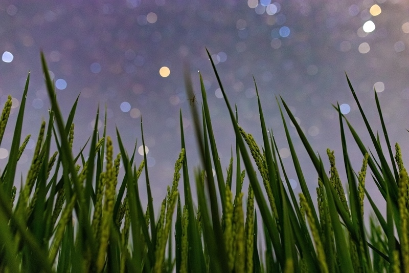 7月25日在黑龍江省佳木斯市富錦市硯山鎮(zhèn)拍攝的星空下的稻田。