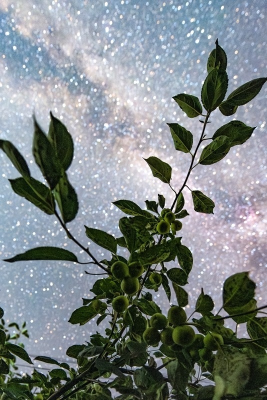 7月25日在黑龍江省佳木斯市湯原縣吉祥鄉(xiāng)拍攝的星空下的沙果。