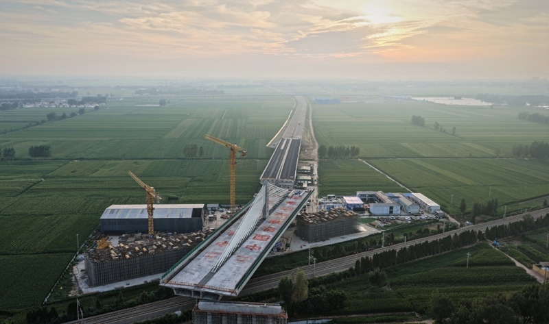 當(dāng)日,在山東德州,由中國(guó)鐵建投資集團(tuán)投資建設(shè)、中鐵十四局集團(tuán)承建的德州至上饒高速公路(簡(jiǎn)稱“德上高速”)臨清連接線跨京九鐵路斜拉橋?qū)崿F(xiàn)精準(zhǔn)轉(zhuǎn)體對(duì)接。該橋采用不對(duì)稱矮塔斜拉結(jié)構(gòu),重達(dá)23500噸。