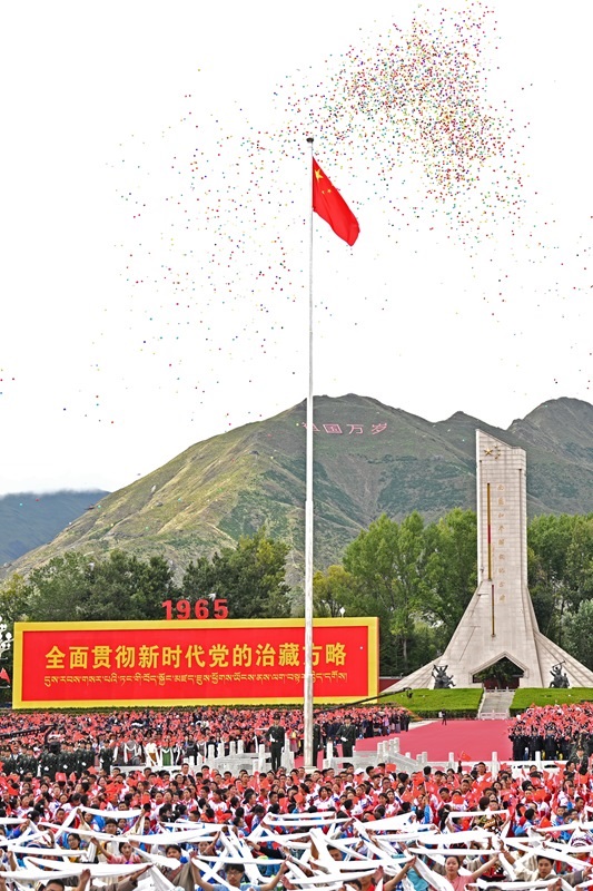 8月21日上午,西藏各族各界干部群眾約2萬人歡聚拉薩市布達(dá)拉宮廣場(chǎng),熱烈慶祝西藏自治區(qū)成立60周年。這是慶祝大會(huì)現(xiàn)場(chǎng)。