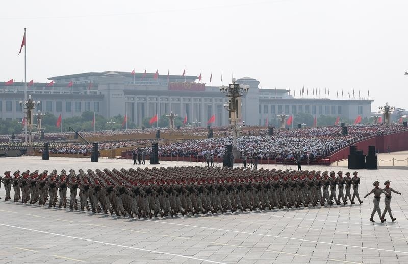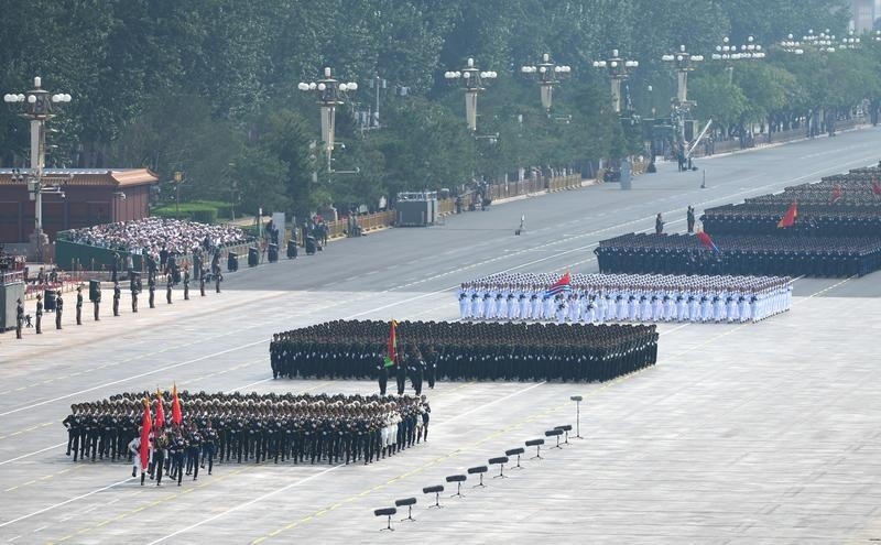 9月3日,紀(jì)念中國人民抗日戰(zhàn)爭暨世界反法西斯戰(zhàn)爭勝利80周年大會(huì)在北京隆重舉行。這是徒步方隊(duì)接受檢閱。