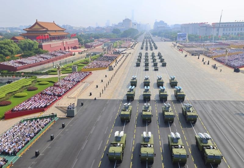 9月3日,紀(jì)念中國人民抗日戰(zhàn)爭暨世界反法西斯戰(zhàn)爭勝利80周年大會(huì)在北京隆重舉行。這是火箭軍方隊(duì)接受檢閱。