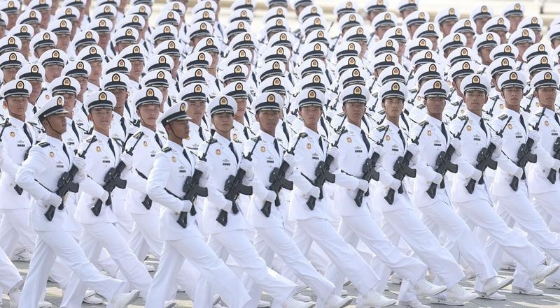 9月3日,紀(jì)念中國人民抗日戰(zhàn)爭暨世界反法西斯戰(zhàn)爭勝利80周年大會(huì)在北京隆重舉行。這是海軍方隊(duì)接受檢閱。