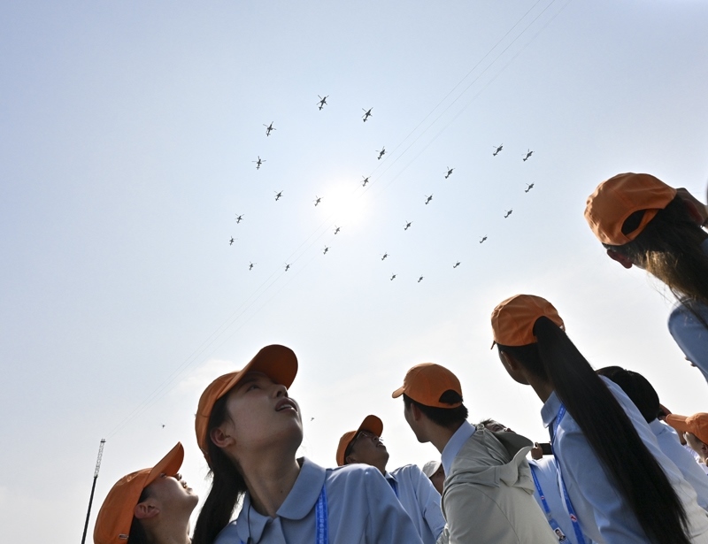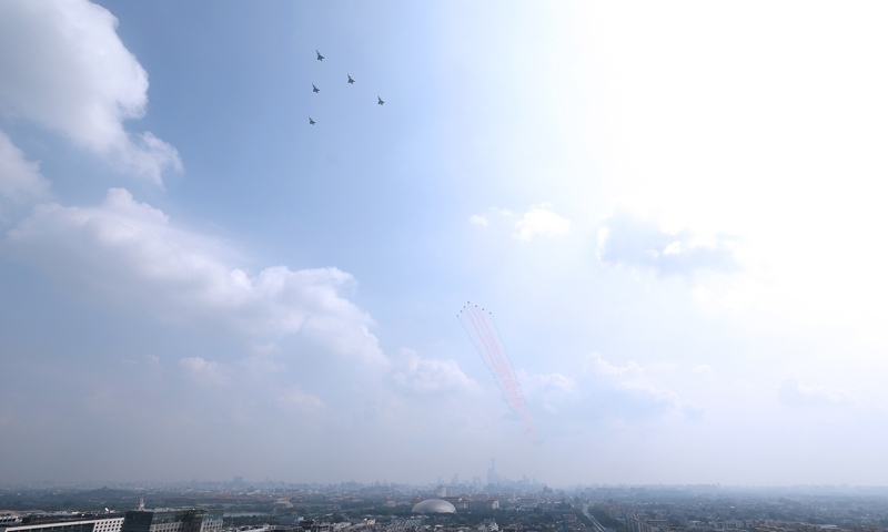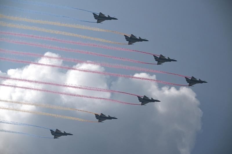 9月3日,紀念中國人民抗日戰(zhàn)爭暨世界反法西斯戰(zhàn)爭勝利80周年大會在北京隆重舉行。這是空中梯隊接受檢閱。