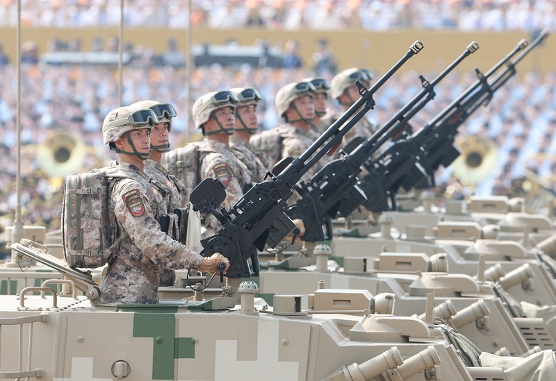 9月3日,紀念中國人民抗日戰(zhàn)爭暨世界反法西斯戰(zhàn)爭勝利80周年大會在北京隆重舉行。這是裝備保障方隊接受檢閱。