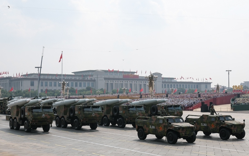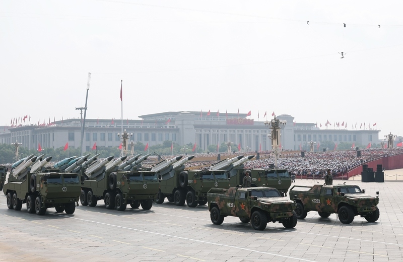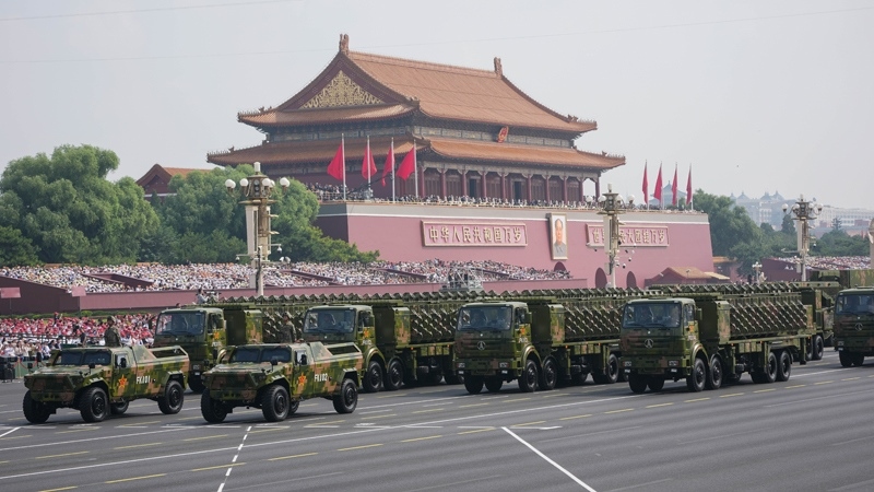 9月3日,紀念中國人民抗日戰(zhàn)爭暨世界反法西斯戰(zhàn)爭勝利80周年大會在北京隆重舉行。這是高超聲速導彈方隊接受檢閱。