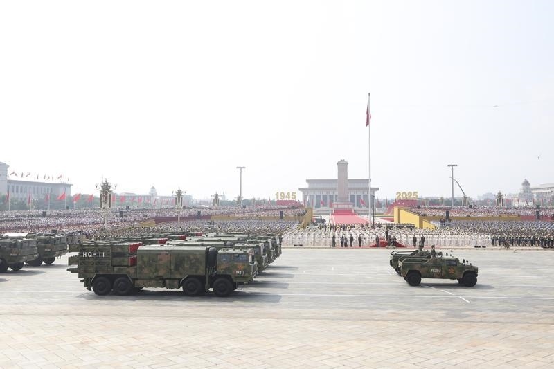 9月3日,紀(jì)念中國人民抗日戰(zhàn)爭暨世界反法西斯戰(zhàn)爭勝利80周年大會在北京隆重舉行。這是對空抗擊方隊接受檢閱。