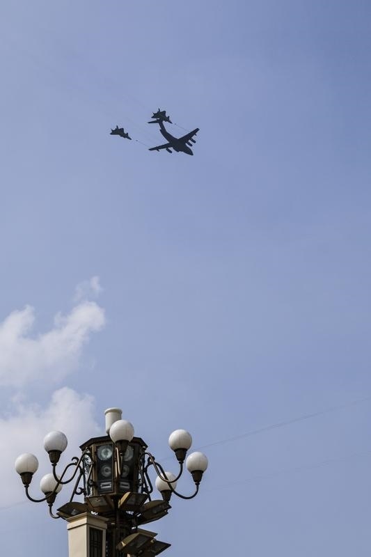 9月3日,紀(jì)念中國人民抗日戰(zhàn)爭暨世界反法西斯戰(zhàn)爭勝利80周年大會在北京隆重舉行。這是加受油機(jī)梯隊接受檢閱。