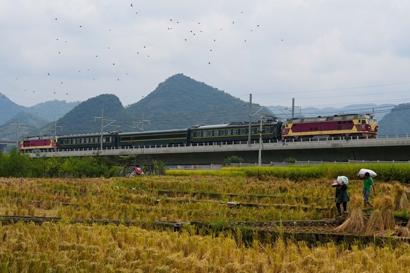 9月6日,在貴州省盤(pán)州市,盤(pán)興高鐵聯(lián)調(diào)聯(lián)試檢測(cè)列車(chē)從盤(pán)州站駛出。