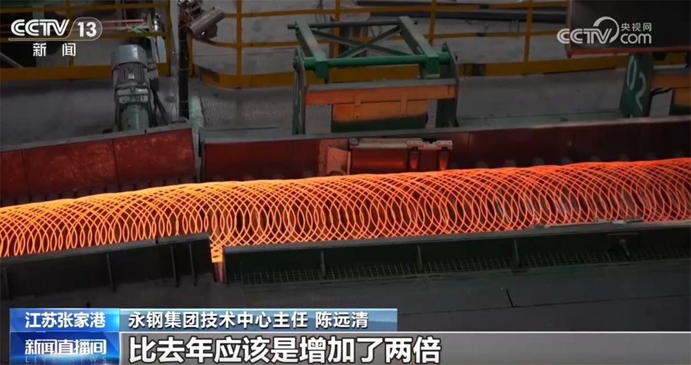 永鋼集團(tuán)技術(shù)中心主任陳遠(yuǎn)清稱:“今年下半年我們的產(chǎn)量銷量實(shí)現(xiàn)了翻番,比以前翻了一倍。隨著我們研發(fā)技術(shù)的突破,我們總產(chǎn)銷量也是翻了兩番,比去年增加了兩倍。”