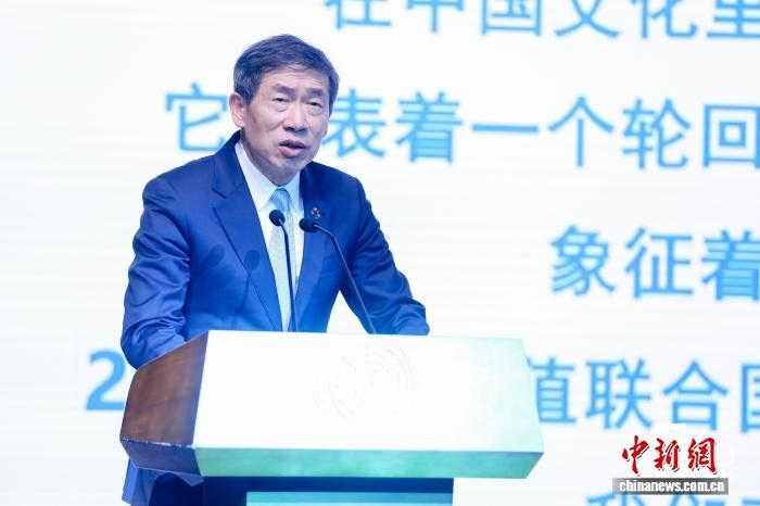 11月13日,聯(lián)合國開發(fā)計(jì)劃署(UNDP)在北京舉辦成立60周年招待會(huì)。圖為聯(lián)合國副秘書長、聯(lián)合國開發(fā)計(jì)劃署代理署長徐浩良致辭,呼吁各方秉持團(tuán)結(jié)精神,拿出更大決心,應(yīng)對全球發(fā)展挑戰(zhàn)。(UNDP供圖)
