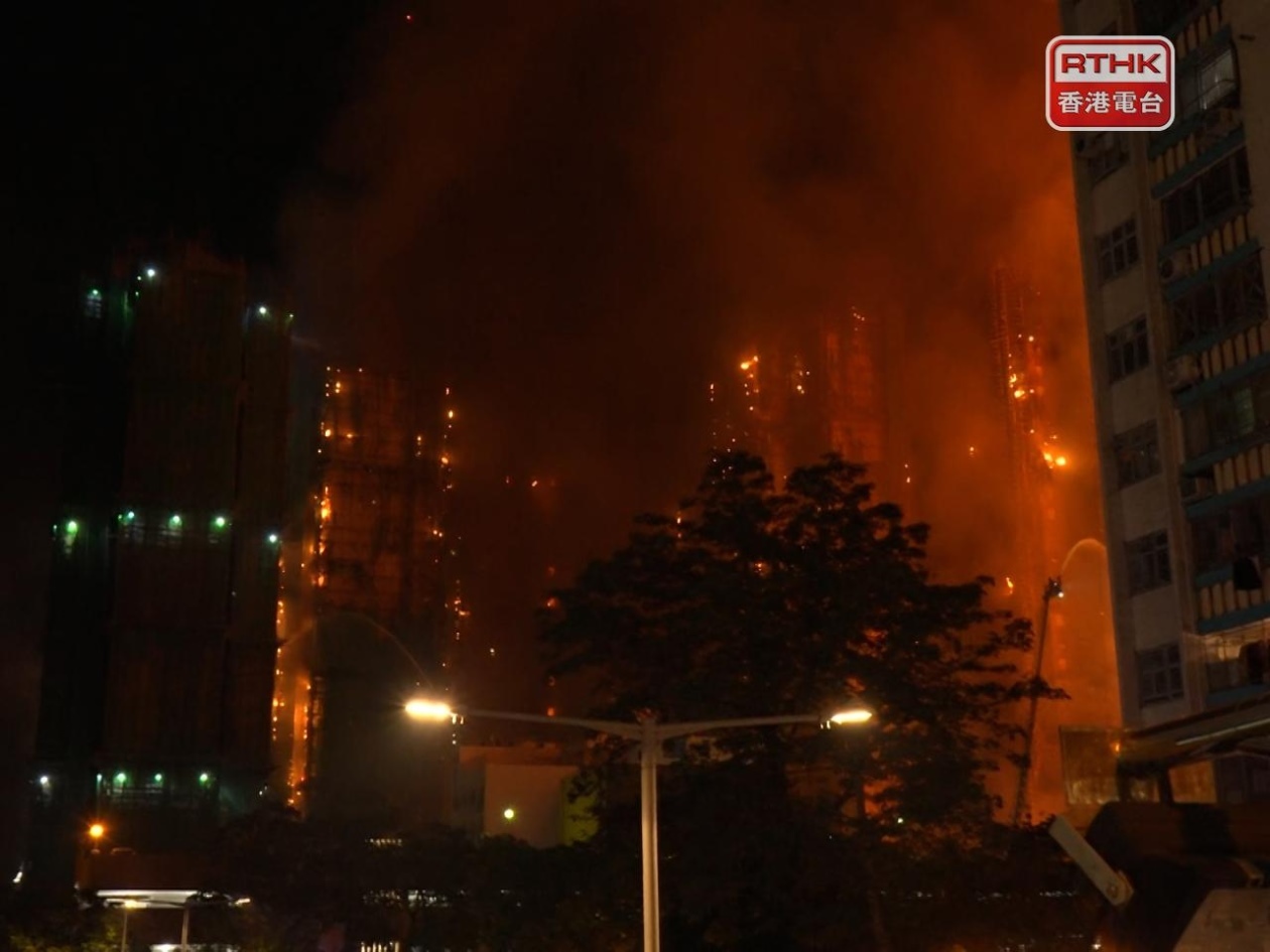 香港大埔宏福苑26日下午發(fā)生火災(zāi)。圖源:香港電臺(tái)網(wǎng)站