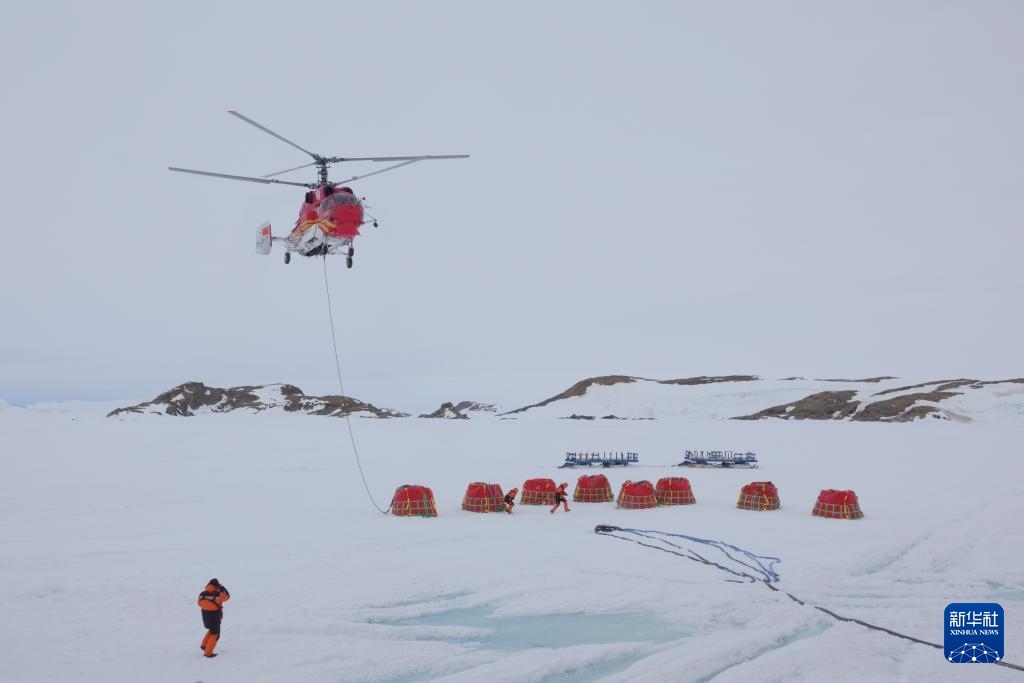 據(jù)悉,“雪龍2”號(hào)正采取“白天空吊、夜晚冰運(yùn)”的節(jié)奏開(kāi)展物資和燃油卸運(yùn),白天利用直升機(jī)吊掛油囊,夜間趁低溫海冰承載力較好時(shí)開(kāi)展冰面車輛雪橇運(yùn)輸。