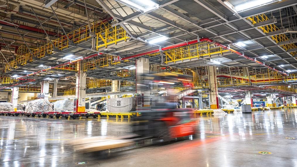 跟隨轉(zhuǎn)運車,記者來到了建筑面積達(dá)75萬平方米的機場“工”字形轉(zhuǎn)運中心。這里,“快點、快點”的催促聲與機器有節(jié)律的運行聲形成交響,在2萬多臺自動分揀設(shè)備和50多公里長傳送帶的支持下,工人們熟練地將數(shù)量規(guī)格不一的包裹抱起、分類、組合、打包,再拼裝出多個符合航空貨運規(guī)格和形狀要求的大包裹。