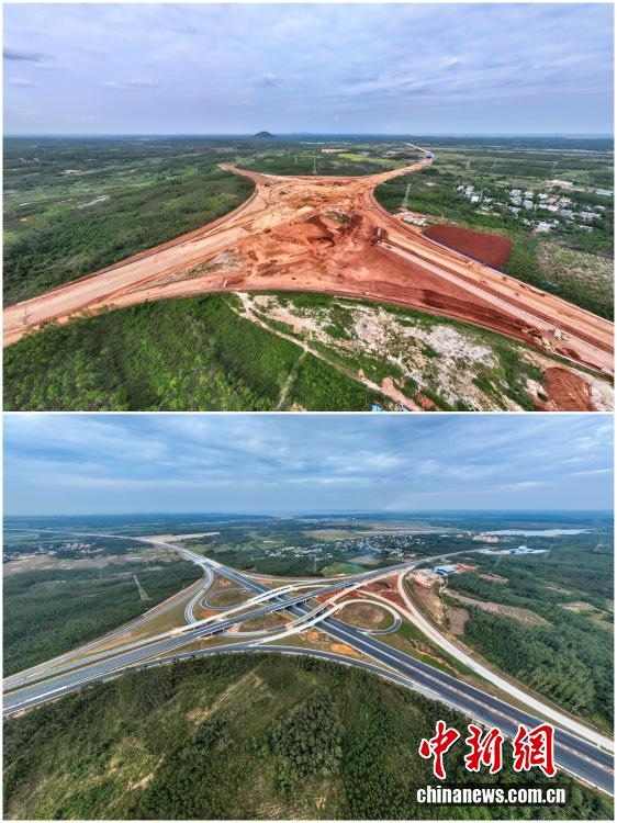 2025年12月18日,海南自由貿(mào)易港正式啟動全島封關(guān)。近年來,海南自貿(mào)港建設(shè)在利好政策帶動下不斷刷新“自貿(mào)港速度”,一個個重大項目、重點園區(qū)拔地而起,直觀呈現(xiàn)海南自貿(mào)港的蓬勃生機。這里正成為中國對外開放的新前沿、互利合作的新熱土和推動經(jīng)濟全球化的新引擎。上資料圖為2024年10月23日建設(shè)中的海南首條雙向八車道高速公路——海南洋浦疏港高速公路SG01標(biāo)段光村互通,下資料圖為2025年12月2日正進行瀝青攤鋪作業(yè)的海南洋浦疏港高速公路光村互通。(拼版圖,無人機照片)