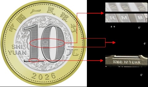 圖5 2026年賀歲雙色銅合金紀(jì)念幣防偽特征示意圖