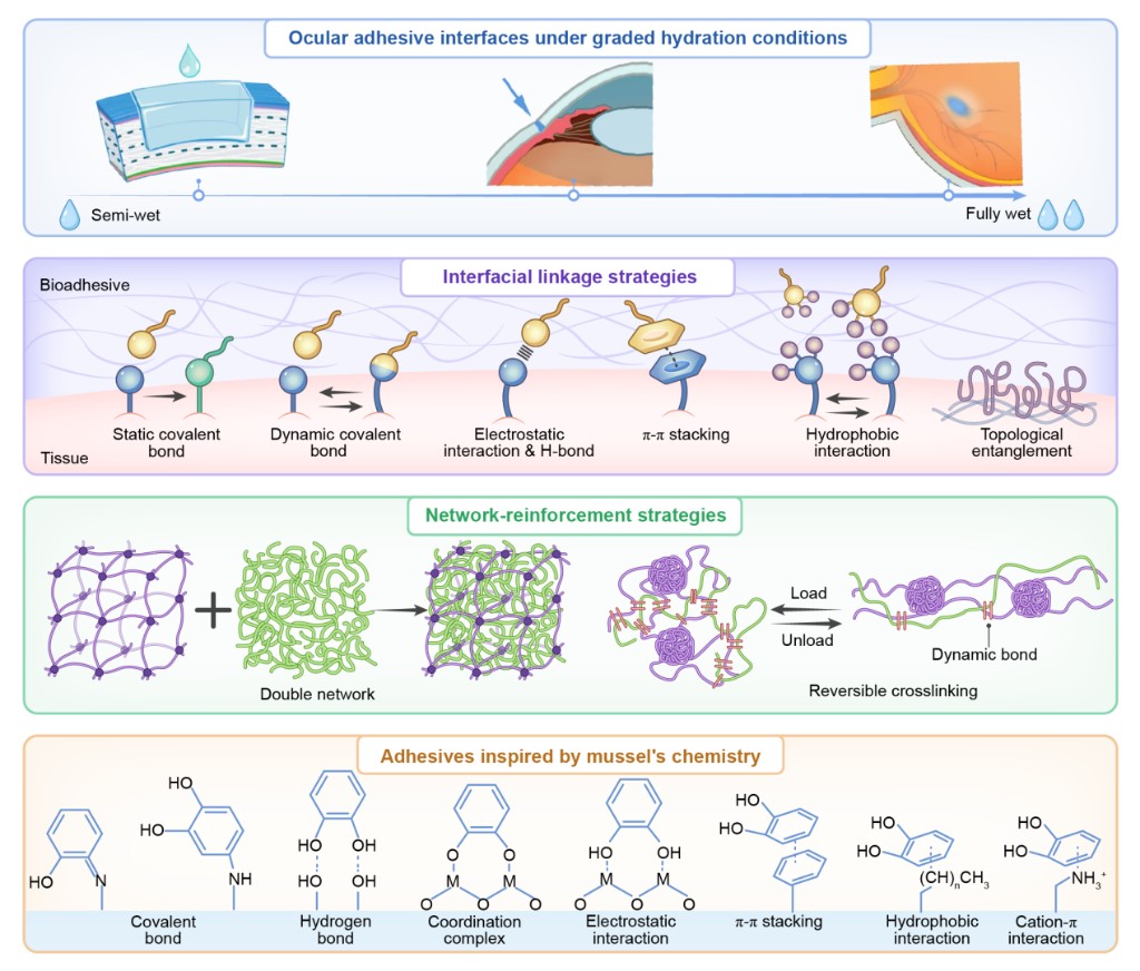 圖為眼部粘附機制與材料設(shè)計策略示意圖。新華社發(fā)
